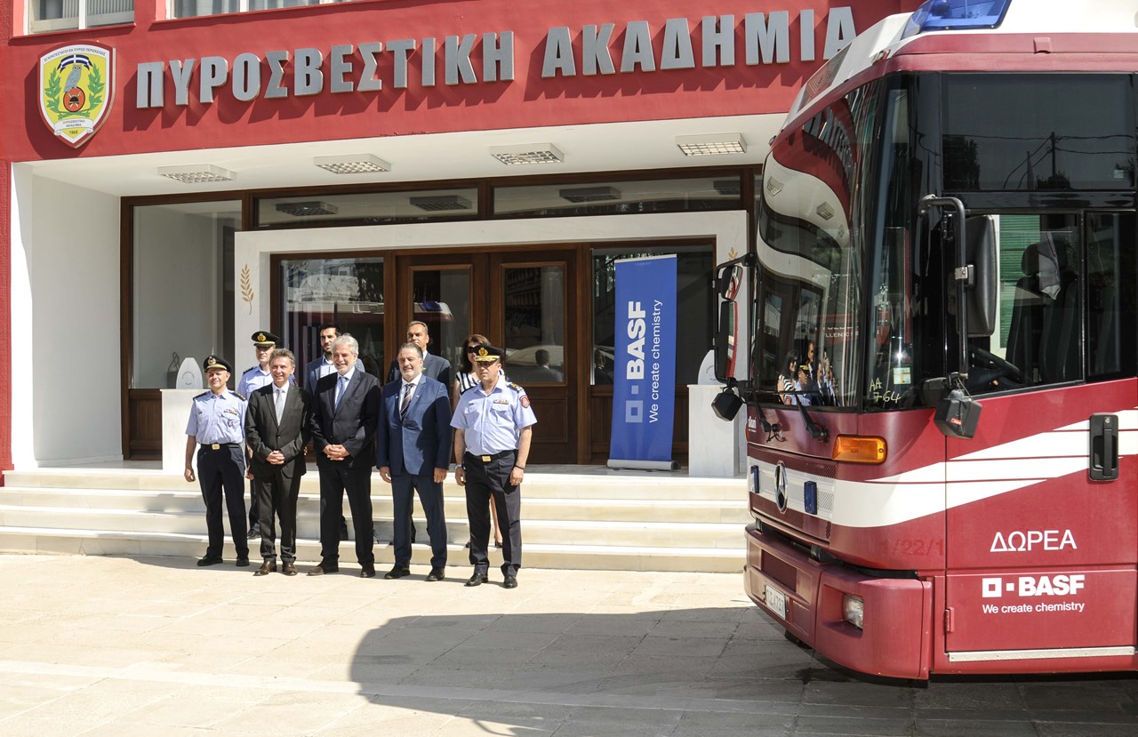 Σε εκδήλωση που πραγματοποιήθηκε σήμερα (23/5) στις εγκαταστάσεις της Πυροσβεστικής Ακαδημίας, στην Κηφισιά, παρουσία του Υπουργού Κλιματικής Κρίσης και Πολιτικής Προστασίας, Χρήστου Στυλιανίδη και του Υπαρχηγού του Πυροσβεστικού Σώματος, Αντιστράτηγου Ιωάννη Γρ. Πετρούτσου, η BASF Ελλάς Α.Β.Ε.Ε. προχώρησε στη δωρεά δύο υδροφόρων πυροσβεστικών οχημάτων, μετά του εξοπλισμού τους, ενισχύοντας έτσι το στόλο του Πυροσβεστικού Σώματος. Τα παραπάνω οχήματα, χωρητικότητας 1000 λίτρων νερού και 1800 λίτρων αφρογόνου υγρού, έχουν ήδη εγγραφεί στη δύναμη των οχημάτων του Σώματος και έχουν τεθεί σε επιχειρησιακή ετοιμότητα.