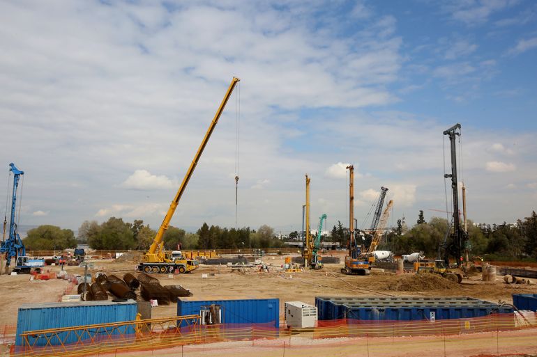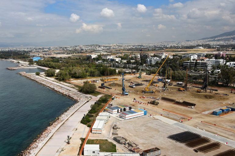 Οι οικοδομικοί γερανοί ξεφυτρώνουν ο ένας μετά τον άλλον στα επιμέρους εργοτάξια που λειτουργούν στο πρώην αεροδρόμιο του Ελληνικού στην περιήγηση σε μερικά από τα εργοτάξια και τοποθεσίες όπου βρίσκονται σε πλήρη εξέλιξη οι εργασίες της μεγαλύτερης αστικής ανάπλασης στην Ευρώπη.