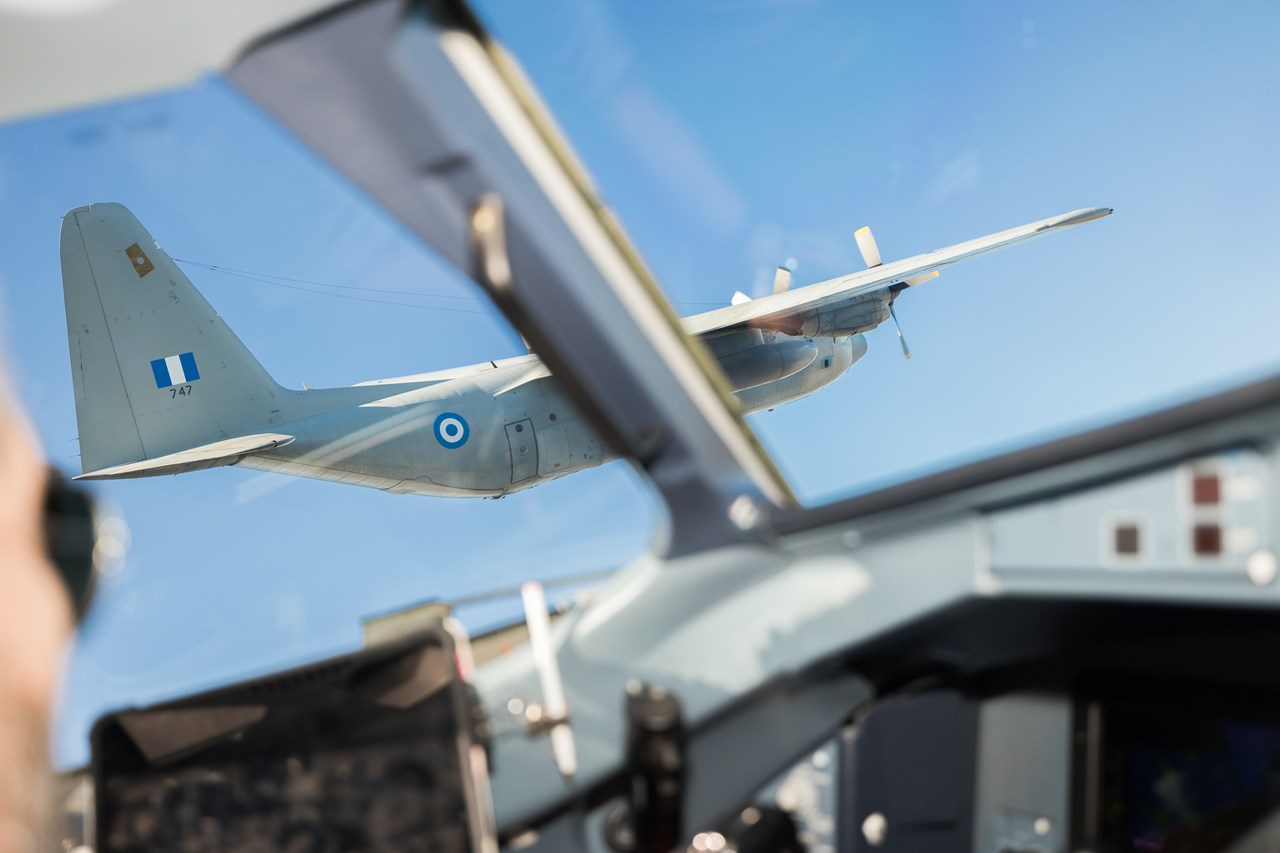 Η μεγάλη αεροπορική επίδειξη κορυφώθηκε με τις πτήσεις κλειστού σχηματισμού από τα μαχητικά F-16 Block 50 και Rafale με το Airbus A320neo και το C-130 με το ATR 72-600.