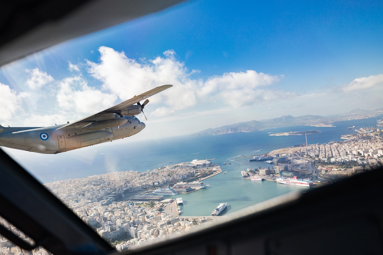 Στον εναέριο χώρο πάνω από τον Φλοίσβο Παλαιού Φαλήρου, τα δύο υπερσύγχρονα αεροσκάφη της SKY express, Airbus A320neo (SX-CHG) και ATR 72-600 (SX-TEM), έδωσαν δυναμικό «παρών» μαζί με τον στόλο της Πολεμικής Αεροπορίας και τις Ομάδες Αεροπορικών Επιδείξεων Μεμονωμένου Αεροσκάφους F-16 «Ζευς», T-6A «Δαίδαλος» και του επετειακού Spitfire.