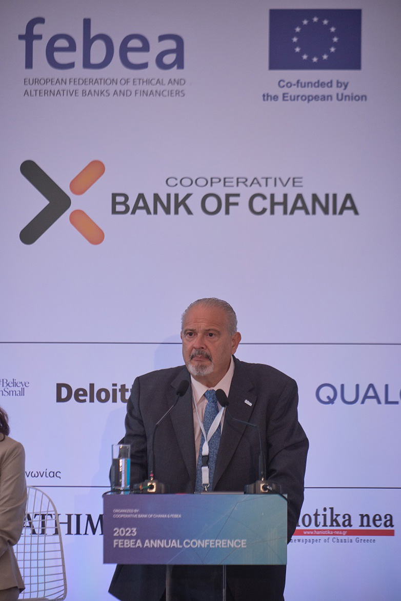Στη συμβολή της Συνεταιριστικής Τράπεζας Χανίων στην τοπική ανάπτυξη και τη στήριξη της οικονομίας με αίσθημα ευθύνης, αναφέρθηκε ο Πρόεδρος του Δ.Σ. της Συνεταιριστικής Τράπεζας Χανίων, κ. Μιχαήλ Μαρακάκης, καλωσορίζοντας στην Αθήνα τα μέλη του FEBEA. Δίνοντας έμφαση στον συνεταιριστικό χαρακτήρα, τόνισε πως «η βιωσιμότητα και η ηθική τραπεζική είναι άρρηκτα συνδεδεμένες με τις αξίες που διέπουν κάθε επιχειρηματική και στρατηγική κίνησή μας, όπως συνέπεια, ακεραιότητα, διαφάνεια, εμπιστοσύνη». Σήμερα, η Συνεταιριστική Τράπεζα Χανίων επεκτείνει το δίκτυό της και μετατρέπεται σταδιακά σε Ανώνυμη Εταιρεία. «Με τις ρίζες μας στα Χανιά, παραμένουμε πιστοί στον τόπο μας και στις παραδοσιακές αξίες της Τραπεζικής, κατέληξε.