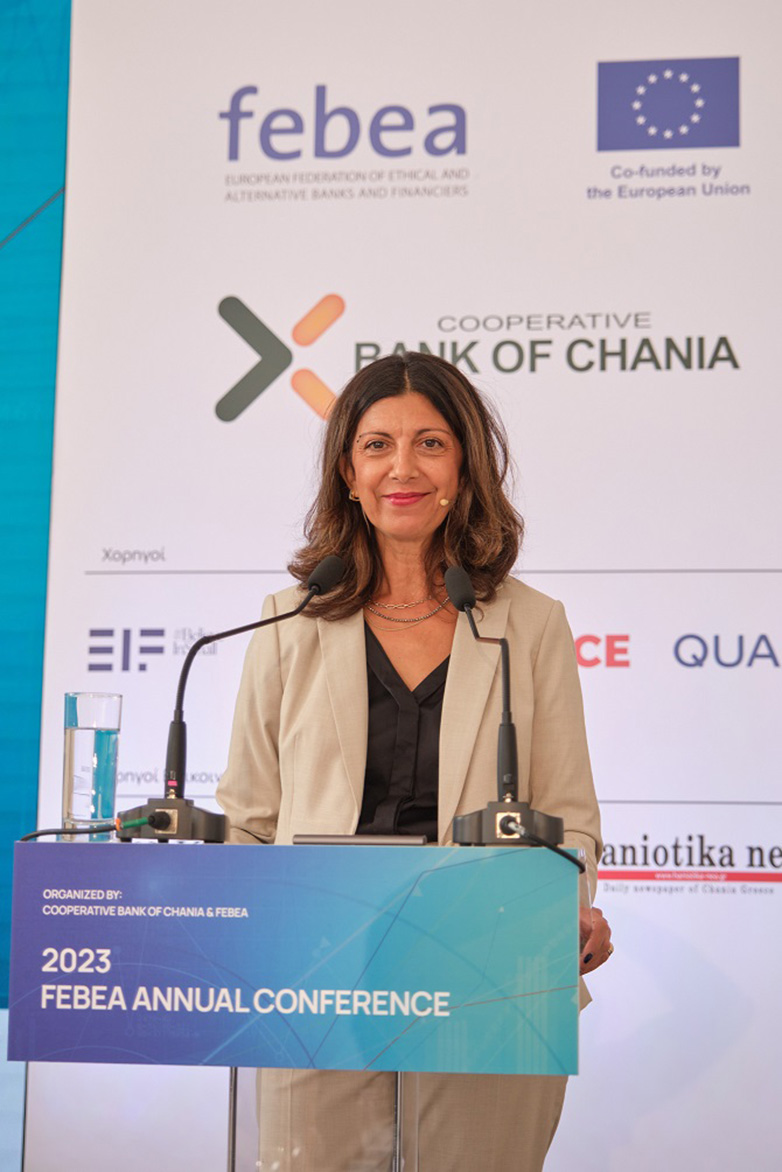 Στο πλαίσιο των θεματικών συζητήσεων που ακολούθησαν, μέλη του FEBEA ανέδειξαν την αποστολή των ηθικών τραπεζών, καθώς και καινοτόμες πρακτικές για τη δημιουργία αποτυπώματος στις τοπικές κοινωνίες.