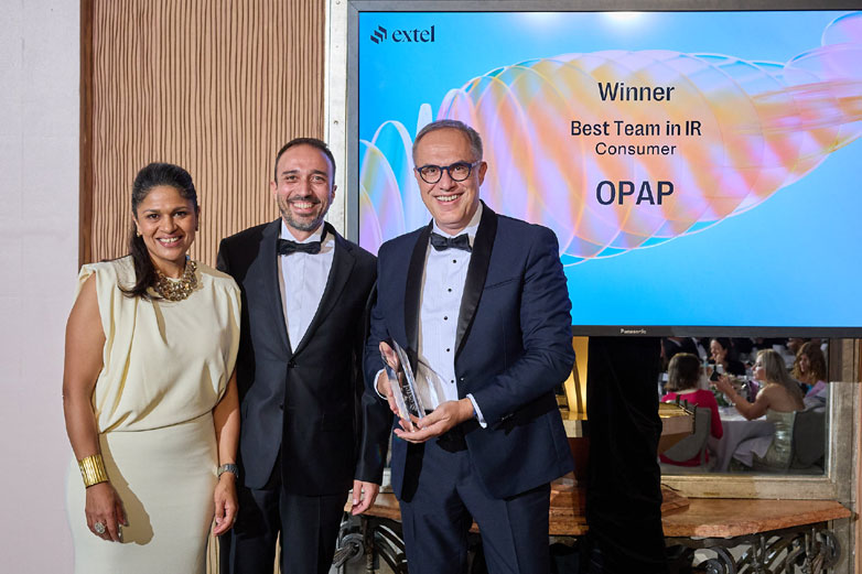 Το βραβείο “Best Team in IR”, Αναδυόμενων Αγορών (EMEA), Large Cap, Consumer Sector, απέσπασε η Ομάδα Επενδυτικών Σχέσεων του ΟΠΑΠ, στο πλαίσιο των βραβείων 2025 Europe & Emerging EMEA Equities Awards, που διοργάνωσε στο Λονδίνο η Extel.