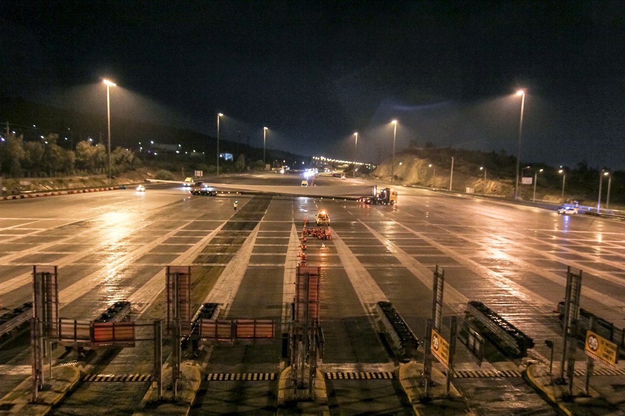 Συγκεκριμένα, περί τις 04.00 τα ξημερώματα της Τρίτης 10 Δεκεμβρίου 2019 ολοκληρώθηκε με επιτυχία η αναστροφή των δύο πρώτων υπερμεγέθων οχημάτων μεταφοράς πτερυγίων ανεμογεννήτριας, μήκους 75 μέτρων έκαστο, στην περιοχή των διοδίων Ελευσίνας.