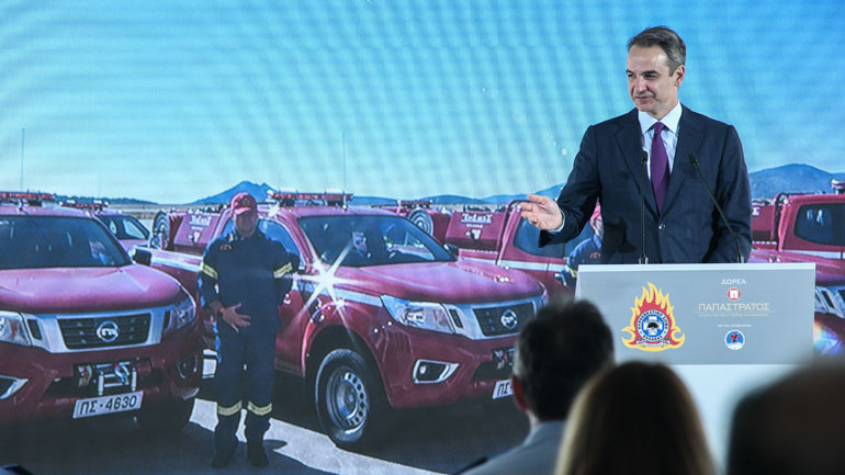 Με κατακλείδα ότι η Ελλάδα εγγυάται ασφάλεια στους επισκέπτες της, αλλά πρωτίστως στους Έλληνες πολίτες, και υπογραμμίζοντας τη γόνιμη σύμπλευση του ιδιωτικού τομέα με το Δημόσιο και το εθελοντικό κίνημα, ο πρωθυπουργός Κυριάκος Μητσοτάκης παρέστη σήμερα στην ειδική τελετή παραλαβής 20 πυροσβεστικών οχημάτων δωρεά της εταιρείας Παπαστράτος, στο κτίριο της Πυροσβεστικής Υπηρεσίας του αεροδρομίου Ελ. Βενιζέλος.