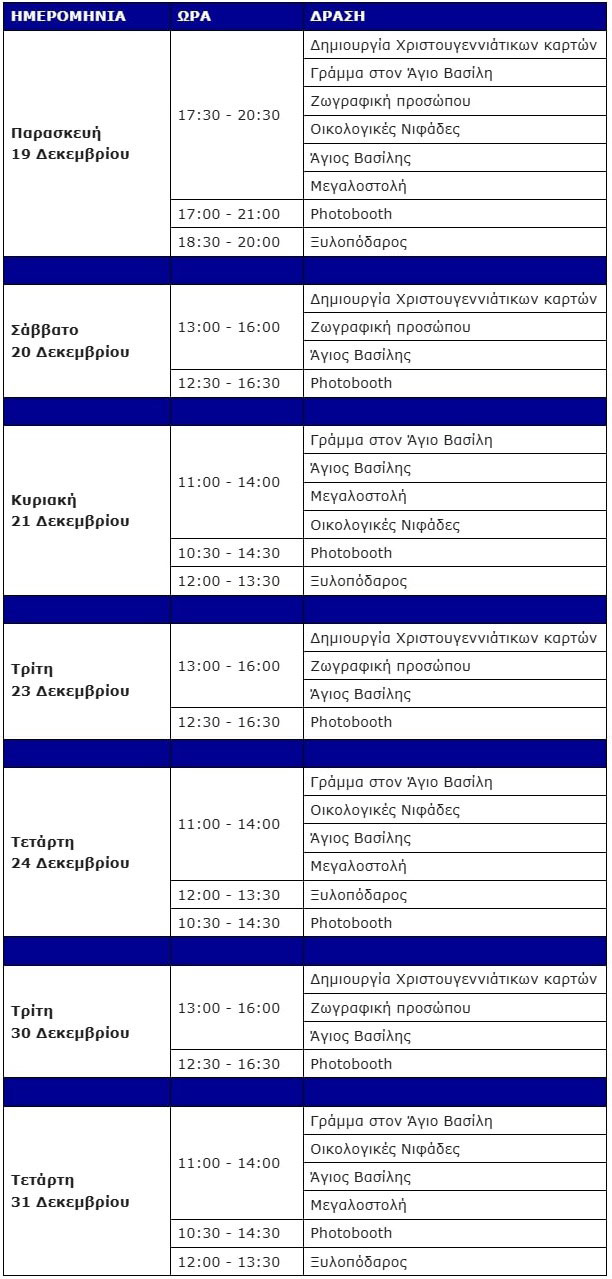 Φέτος, την καρδιά του χριστουγεννιάτικου χωριού αποτελεί το «Σπίτι του Άγιου Βασίλη», ένας ζεστός και πολύχρωμος χώρος όπου τα παιδιά μπορούν να γνωρίσουν από κοντά τον Άγιο Βασίλη, να φωτογραφηθούν μαζί του και να του παραδώσουν το γράμμα τους. Παράλληλα, και καθ’ όλη τη διάρκεια των γιορτών, τα παιδιά θα μπορούν να δημιουργήσουν τις δικές τους χριστουγεννιάτικες κάρτες, να «μεταμορφωθούν» μέσα από το διασκεδαστικό face painting εργαστήρι και να χορέψουν με τον εντυπωσιακό ξυλοπόδαρο που θα δίνει τον γιορτινό ρυθμό.