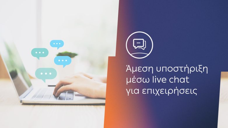 Η υπηρεσία Live Chat προσφέρει εξυπηρέτηση και υποστήριξη για τον επαγγελματία που προτιμά να γράφει από τον υπολογιστή ή το κινητό του τηλέφωνο, αντί να επικοινωνήσει μέσω τηλεφώνου ή βιντεοκλήσης. Η γραπτή συνομιλία πραγματοποιείται σε πραγματικό χρόνο με εξειδικευμένο εκπρόσωπο ο οποίος είναι έτοιμος να λύσει κάθε απορία.