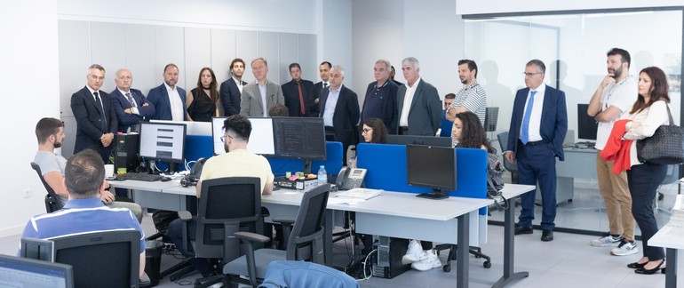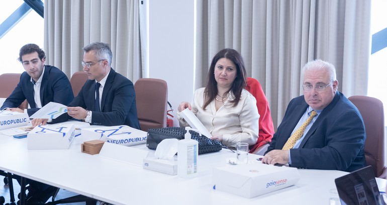 Η αντιπροσωπεία της ΠΕΕΕΒ συναντήθηκε αρχικά με το Δ.Σ. και τον Πρόεδρο της NEUROPUBLIC, κ. Χριστόδουλο Αντωνιάδη και ξεναγήθηκε στις εγκαταστάσεις της εταιρείας στον Πειραιά, όπου είδαν από κοντά την άρτια τεχνολογική υποδομή της και έθεσαν σχετικές ερωτήσεις στα εξειδικευμένα στελέχη.