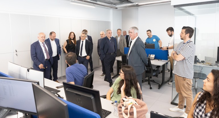 Στη συνέχεια, τα μέλη της ΠΕΕΕΒ επισκέφθηκαν το υπερσύγχρονο gaiasense HUB, το δεύτερο ιδιόκτητο κτήριο της NEUROPUBLIC, όπου τους υποδέχτηκε η Διευθύνουσα Σύμβουλος της GAIA Επιχειρείν, Έλλη Τσιφόρου. Ακολούθησε ξενάγηση στην πλήρως αυτοματοποιημένη γραμμή παραγωγής, την αποθήκη, αλλά και στο δεύτερο data center της NEUROPUBLIC, ενώ τους δόθηκε η ευκαιρία να συνομιλήσουν με τους γεωπόνους του ολοκληρωμένου, καινοτόμου συστήματος ευφυούς γεωργίας gaiasense by NEUROPUBLIC και να ενημερωθούν για τις τεχνολογίες αιχμής που υποστηρίζει το HUB.