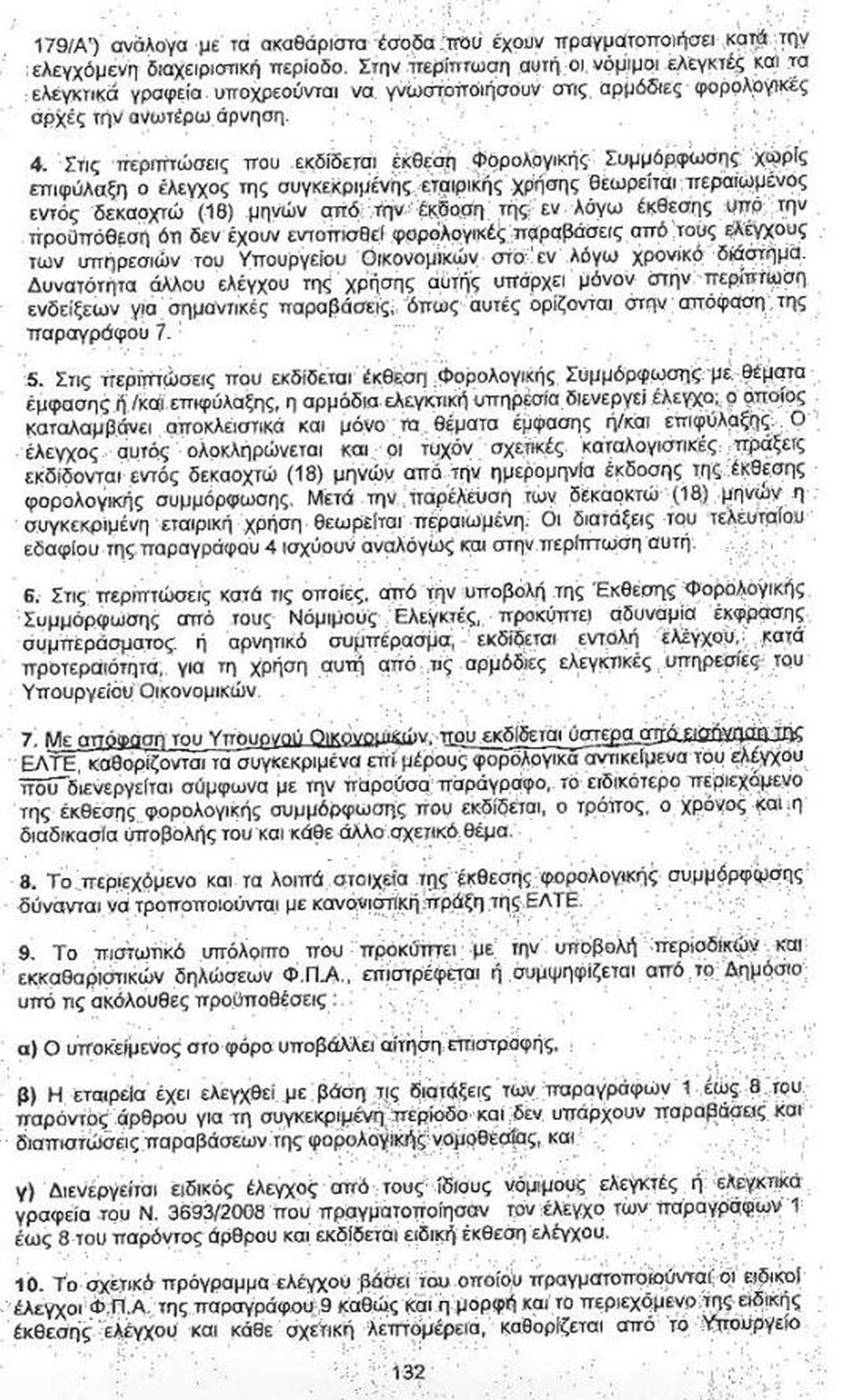 Ιδιαίτερο ενδιαφέρον παρουσιάζει η παράγραφος 4 του εν λόγω άρθρου, στη οποία επισημαίνεται ότι σε 18 μήνες από την στιγμή που θα εκδοθεί η φορολογική συμμόρφωση, ο έλεγχος της εκάστοτε επιχείρησης θεωρείται περαιωμένος.