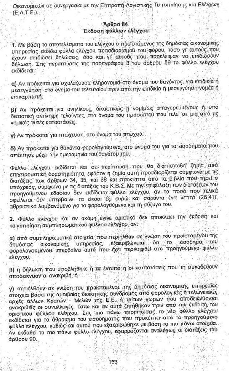 Στο νομοσχέδιο και συγκεκριμένα στο άρθρο 83 που φέρει τον τίτλο «Έκθεση φορολογικής συμμόρφωσης», ξεκαθαρίζεται ότι πλέον οι επιχειρήσεις (οικονομικές οντότητες χαρακτηρίζονται), θα ελέγχονται από ιδιωτικές ελεγκτικές εταιρείες.