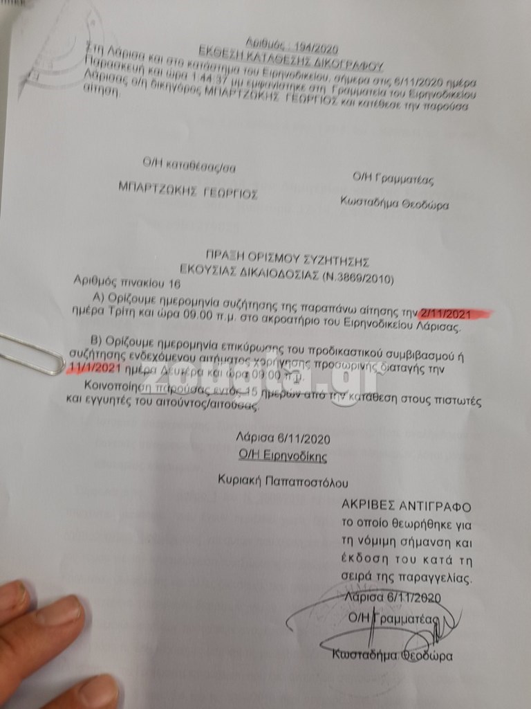 Πάντως το γεγονός είναι ότι τα αρμόδια Ειρηνοδικεία παραλαμβάνουν αιτήσεις τόσο κατά το χρονικό διάστημα έως τέλος του Δεκέμβριου όσο και το 2021.