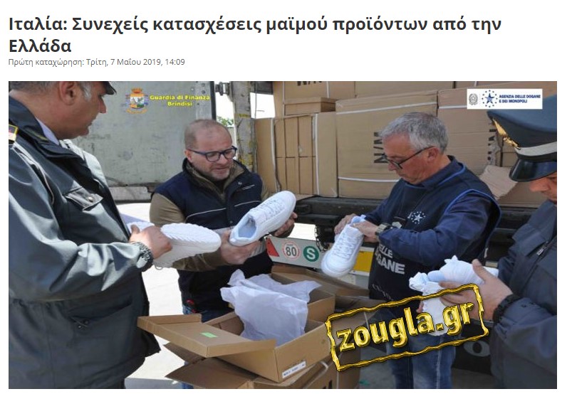 Συνεχείς είναι το τελευταίο διάστημα οι κατασχέσεις φορτίων μαϊμού προϊόντων, τα οποία εισέρχονται στην Ιταλία από ελληνικά λιμάνια. Ήδη το zougla.gr, έχει δημοσιεύσει εκτενές ρεπορτάζ.