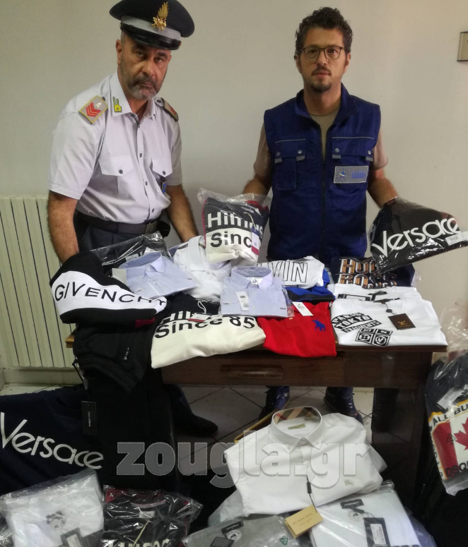 Κατά τη διάρκεια του ελέγχου, διαπίστωσαν πως το όχημα ήταν φορτωμένο με ρούχα «μαϊμού», επώνυμων εταιρειών, όπως Armani, Burberry, Dolce & Gabbana και Lacoste.