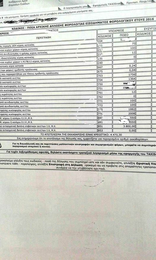 Για όλα τα παραπάνω καλείται να πληρώσει 4.470,30 ευρώ ( δείτε τη σχετική εικόνα από την εκκαθάριση της δήλωσης).