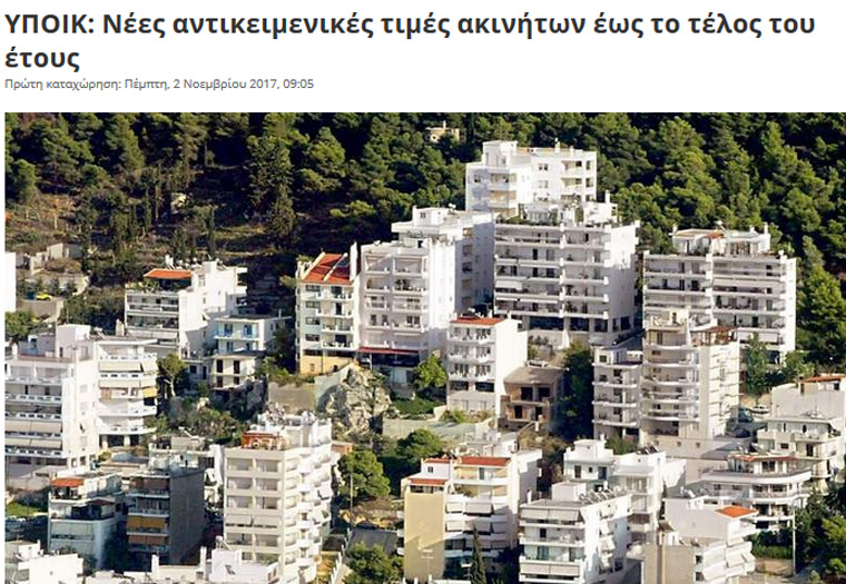 Νέες αντικειμενικές αξίες βρίσκονται «στα σκαριά» για τα ακίνητα, οι τιμές των οποίων θα αλλάξουν έπειτα από σχετικές εισηγήσεις. Ως εκ τούτου, βάσει των νέων αυτών τιμών θα διαμορφωθεί και ο καινούργιος ΕΝΦΙΑ, αρχής γενομένης από την 1η Ιανουαρίου του 2018.