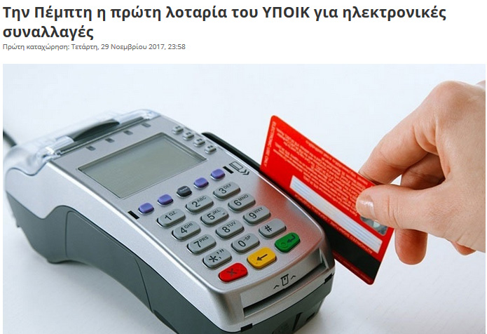 Στις 19.30 το απόγευμα… κληρώνει για τους κατόχους και χρήστες πιστωτικών και χρεωστικών καρτών.