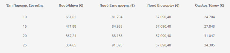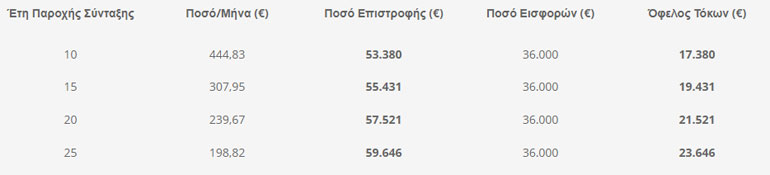 Από τη 3 και 5 στήλη διακρίνεται ότι η επιλογή της σύνταξης αποτελεί για τον ασφαλισμένο μακροπρόθεσμα μια πιο αποδοτική επιλογή και αυτό διότι για όσα περισσότερα έτη επιλέξει ο ασφαλισμένος να λαμβάνει τη σύνταξη, τόσο περισσότεροι θα είναι και οι ανατοκισμοί του κεφαλαίου του, παράγοντας για τον ίδιο μεγαλύτερο όφελος σε τόκους.
