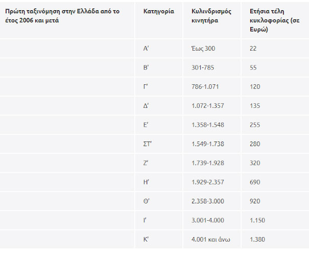 Συνεπώς, τα τέλη κυκλοφορίας 2019 θα διαμορφωθούν ως εξής: