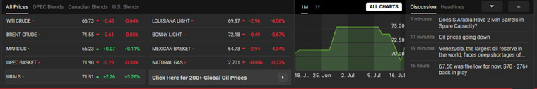 Δείτε στον παρακάτω πίνακα τις σημερινές τιμές του πετρελαίου:
