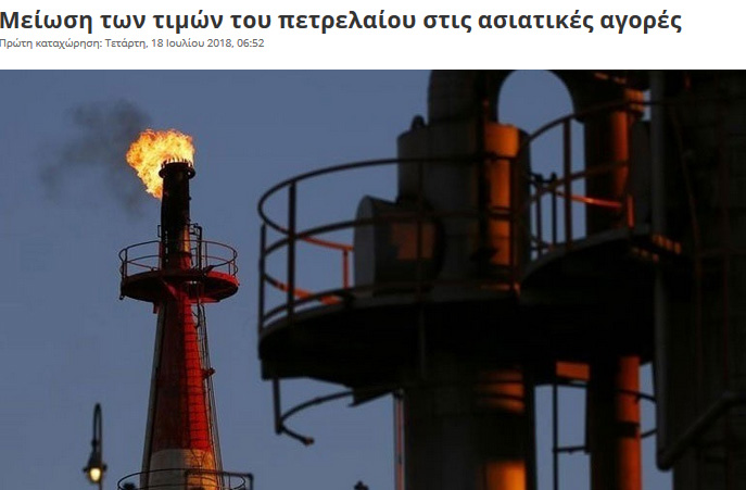 Σήμερα οι τιμές του πετρελαίου εμφανίζονται μειωμένες στις ασιατικές αγορές, μετά τη δημοσιοποίηση αναφοράς για την αύξηση των αμερικανικών αποθεμάτων αργού πετρελαίου την προηγούμενη εβδομάδα, ενώ οι αναλυτές ανέμεναν τη σημαντική μείωσή τους.