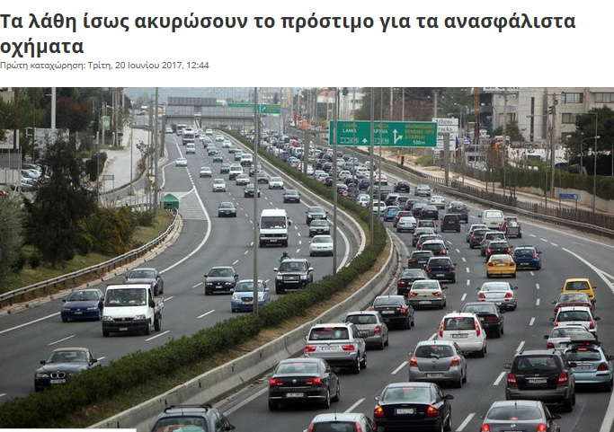 Σήμερα αναμένεται να ληφθούν οι αποφάσεις των συναρμόδιων Υπουργείων Οικονομικών και Μεταφορών για τα περίπου 1.150.000 ανασφάλιστα οχήματα που τέθηκαν στο μικροσκόπιο των ελεγκτικών αρχώνΟι κ.κ. Ευκλείδης Τσακαλώτος και Χρήστος Σπίρτζης έχουν να αντιμετωπίσουν ωστόσο ένα δύσκολο έργο, καθώς πρέπει να λάβουν τελικές αποφάσεις σχετικά με 250.000 τουλάχιστον λανθασμένα ειδοποιητήρια που εστάλησαν στους ιδιοκτήτες και τους καλούν να καταβάλουν ηλεκτρονικό παράβολο 250 ευρώ.