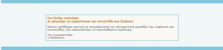 Το μήνυμα που εμφανιζόταν κατά την είσοδο στο Taxisnet