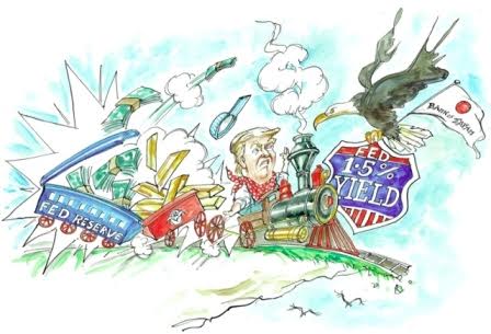 Με το δολάριο και τα επιτόκια των ΗΠΑ να αυξάνονται με ολοένα και πιο επώδυνο τρόπο το 2017, η δημοσιονομική πολιτική τεστοστερόνης του νέου Αμερικανού προέδρου θέτει τις 10ετείς αμερικανικές αποδόσεις στην τροχιά του 3%, σπέρνοντας τον πανικό στην αγορά. Στα πρόθυρα της καταστροφής, η Ομοσπονδιακή Τράπεζα των ΗΠΑ (Fed) αντιγράφει το σύστημα ελέγχου της καμπύλης αποδόσεων της Τράπεζας της Ιαπωνίας (BoJ), ρυθμίζοντας την απόδοση του 10ετούς κρατικού ομολόγου στο 1,5% – αλλά από διαφορετική σκοπιά, εγκαινιάζοντας ουσιαστικά το 4ο πρόγραμμα ποσοτικής χαλάρωσης, QE4, που γίνεται αργότερα γνωστό και ως QE Δίχως Τέλος. Αυτό με τη σειρά του σταματά εγκαίρως τις μαζικές πωλήσεις στις παγκόσμιες αγορές μετοχών και ομολόγων, βοηθώντας τις παγκόσμιες αγορές ομολόγων να καταγράψουν τα μεγαλύτερα εβδομαδιαία κέρδη τους σε επτά χρόνια. Οι όποιες επικρίσεις χάνονται κάτω από τον θόρυβο ενός ακόμα ράλι με άρωμα κεντρικής τράπεζας.