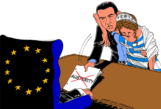 Δεν μπορεί μια οικονομία, μια χώρα και μάλιστα της Ε.Ε. νάναι σ΄αυτό το χάλι και η κυβέρνησή της να μην είναι ικανή να διεκδικήσει το μερίδιό της από το πρόγραμμα ποσοτικής χαλάρωσης, στην ουσία (τσάμπα λεφτά). Δεν μπορεί οι δανειστές να μας επιβάλουν να πυροβολούμε… τα πόδια μας με βλακώδη και καταστρεπτικά προγράμματα (διάσωσης) και είναι πραγματικά τραγικό και ταυτόχρονα άδικο για την κοινωνία, όταν οι κυβερνήσεις είναι ανίκανες να επιβάλουν μεταρρυθμίσεις, κόβοντας τις δαπάνες από το Δημόσιο, χωρίς να κάνουν απολύσεις, και μειώσεις συντάξεων που κάνουν μέχρι τώρα και ονειρεύονται να κάνουν στο μέλλον.
