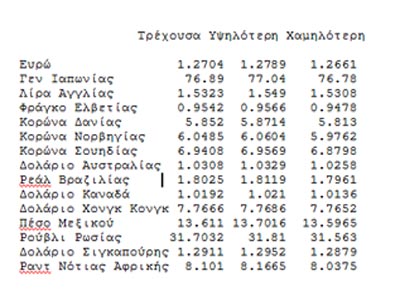 Οι ισοτιμίες νομισμάτων-δολαρίου στις 23:00