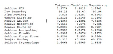 Οι ισοτιμίες των ξένων νομισμάτων έναντι του ευρώ είχαν διαμορφωθεί στις 23:00 (ώρα Ελλάδας) στο Λονδίνο ως εξής...