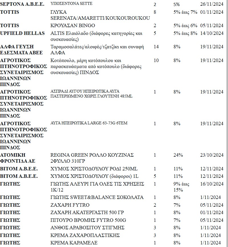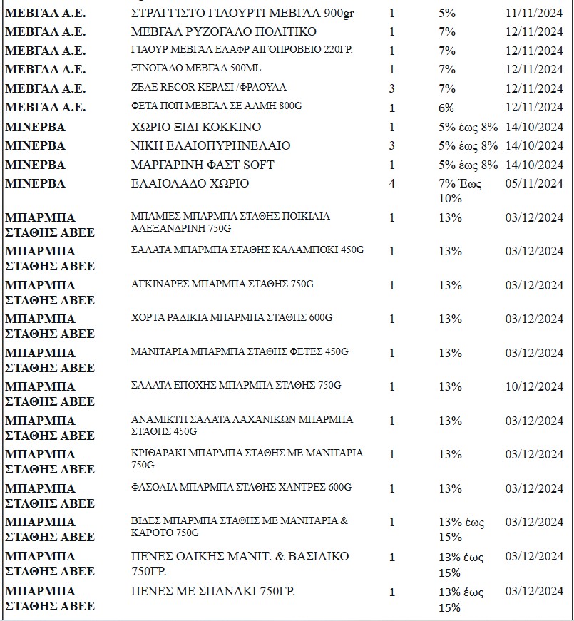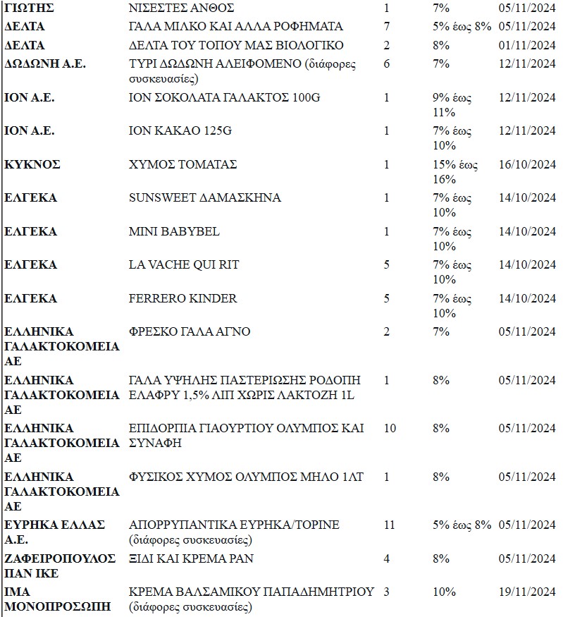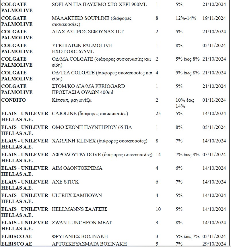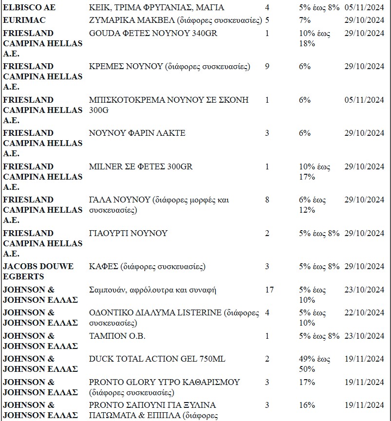 Στη νέα λίστα, συμπεριλαμβάνεται η ημερομηνία έναρξης εφαρμογής της μειωμένης τιμής, διευκολύνοντας έτσι τους καταναλωτές στις επιλογές τους.