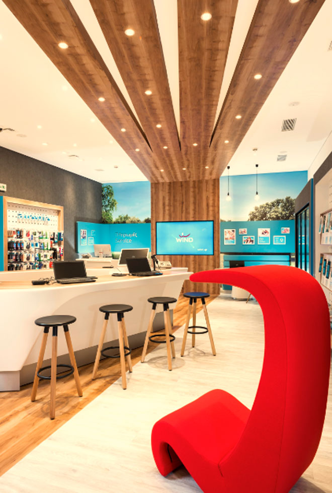 Η αρχιτεκτονική των νέων καταστημάτων WIND φέρει την υπογραφή του μεγαλύτερου διεθνούς γραφείου εξειδίκευσης στο brand & retail design, την Allen International . Έχει δημιουργηθεί ένας άκρως οικείος χώρος που κάθε επισκέπτης τον νιώθει ως δικό του. Οι χώροι και οι λειτουργίες του καταστήματος είναι σχεδιασμένοι ώστε να καθοδηγούν τον πελάτη σε αυτό που τον ενδιαφέρει αλλά και να τον φιλοξενούν για όσο το επιθυμεί ενώ ο ίδιος αισθάνεται άνετα σαν να βρίσκεται στο σπίτι του.
