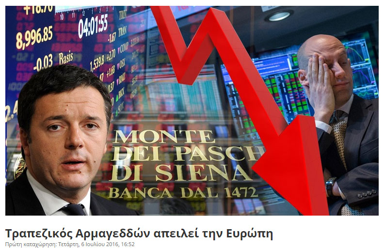 Η Ιταλία γνωρίζει τη μεγαλύτερη «αστάθεια» στην ευρωζώνη, μετά το σοκ του αποτελέσματος στο βρετανικό δημοψήφισμα, με τις τραπεζικές μετοχές να έχουν χάσει το ένα τρίτο της αξίας τους. Οι ανησυχίες εντείνονται εν όψει των αποτελεσμάτων των stress tests (που αναμένονται αυτόν τον μήνα) και του δημοψηφίσματος για το Σύνταγμα που θα διεξαχθεί στην Ιταλία στις αρχές Οκτωβρίου, και στο οποίο ο Ρέντσι ποντάρει τη θέση του.