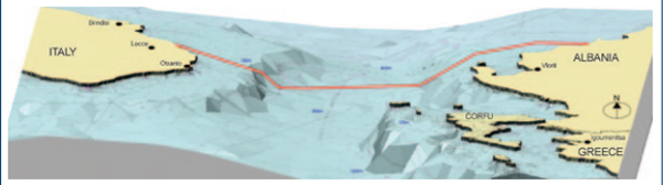 Η διαδρομή του υποθαλάσσιου αγωγού από την Αλβανία στην Ιταλία