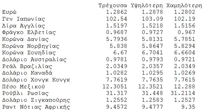Οι ισοτιμίες των ξένων νομισμάτων έναντι του δολαρίου διαμορφώθηκαν στις 15:00 (ώρα Ελλάδας) στο Λονδίνο ως εξής...