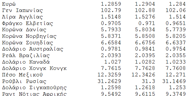 Οι ισοτιμίες των ξένων νομισμάτων έναντι του δολαρίου είχαν διαμορφωθεί στις 15:00 (ώρα Ελλάδας) στο Λονδίνο ως εξής...
