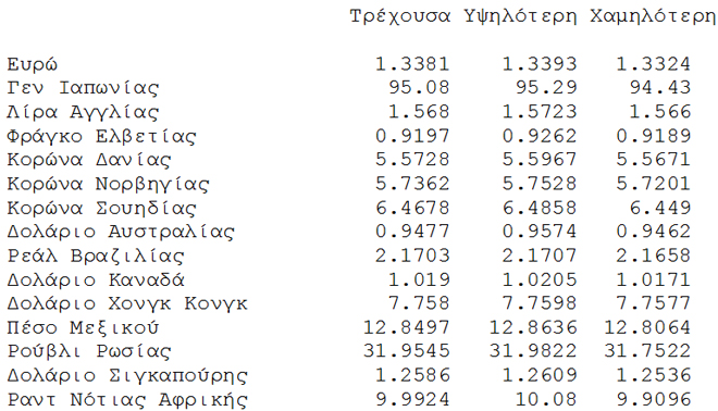 Οι ισοτιμίες των ξένων νομισμάτων έναντι του δολαρίου είχαν διαμορφωθεί στις 12.00 (ώρα Ελλάδας) στο Λονδίνο ως εξής...