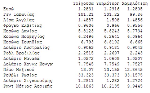 Οι ισοτιμίες των ξένων νομισμάτων έναντι του δολαρίου είχαν διαμορφωθεί στις 24:00 (ώρα Ελλάδας) στο Λονδίνο ως εξής...