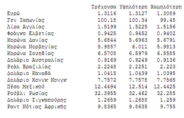 Οι ισοτιμίες των ξένων νομισμάτων έναντι του δολαρίου διαμορφώθηκαν στις 12:00 ώρα Ελλάδος στο Λονδίνο ως εξής: