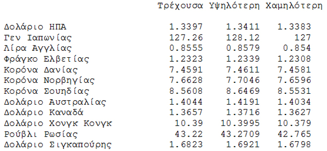 Οι ισοτιμίες των ξένων νομισμάτων έναντι του ευρώ διαμορφώθηκαν στις 18.00 (ώρα Ελλάδας) στο Λονδίνο ως εξής...