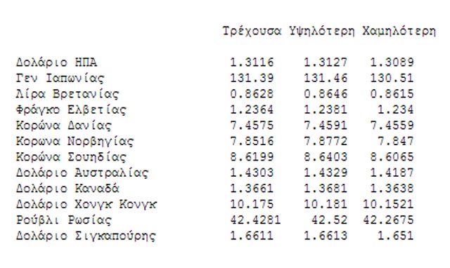 Ακολουθούν οι ισοτιμίες των ξένων νομισμάτων όπως διαμορφώθηκαν στο Λονδίνο στις 12:00 ώρα Ελλάδας: