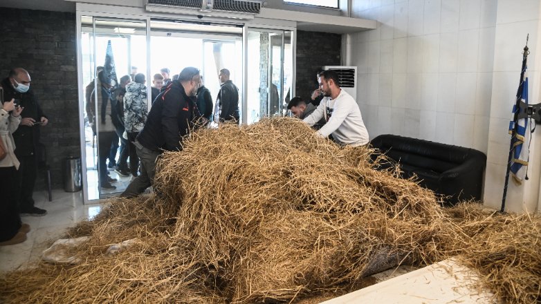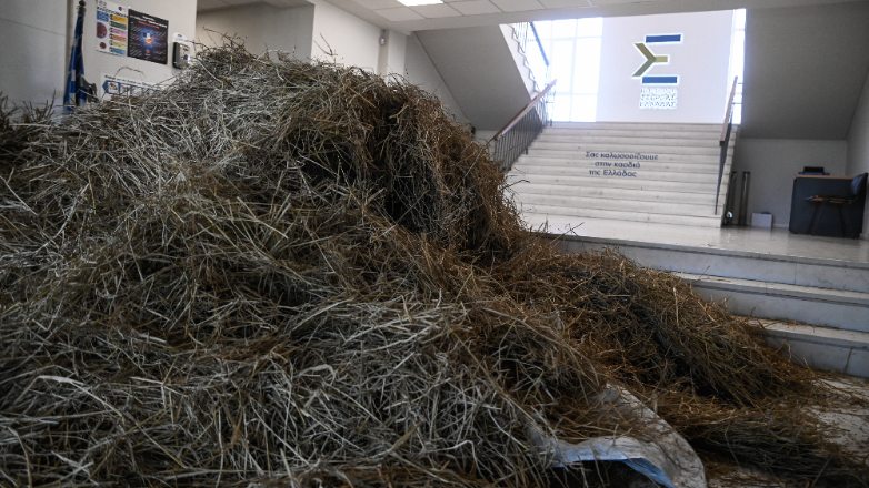 Αξιοσημείωτο είναι ότι, οι αγρότες έκλεισαν την είσοδο με μία μπάλα από άχυρα σε ένδειξη διαμαρτυρίας.