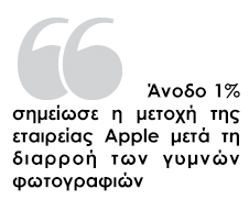 Άνοδο της τάξεως του 1% κατέγραψε η μετοχή της εταιρείας Apple, η οποία έφθασε στο επίπεδο ρεκόρ των 103,74 δολαρίων, μόλις ο τεχνολογικός κολοσσός ανακοίνωσε ότι το πρόβλημα της διαρροής γυμνών φωτογραφιών διασημοτήτων της διεθνούς showbiz λύθηκε.
