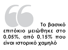Συγκεκριμένα, το βασικό επιτόκιο μειώθηκε στο 0,05%, από 0,15% που είναι ιστορικό χαμηλό, ενώ το επιτόκιο καταθέσεων, που για πρώτη φορά στην ιστορία είχε μειωθεί πριν από δύο μήνες σε αρνητικά επίπεδα, μειώθηκε περαιτέρω στο -0,2%.