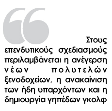 Στους επενδυτικούς σχεδιασμούς περιλαμβάνεται η ανέγερση νέων πολυτελών ξενοδοχείων, η ανακαίνιση των ήδη υπαρχόντων και η δημιουργία γηπέδων γκολφ.