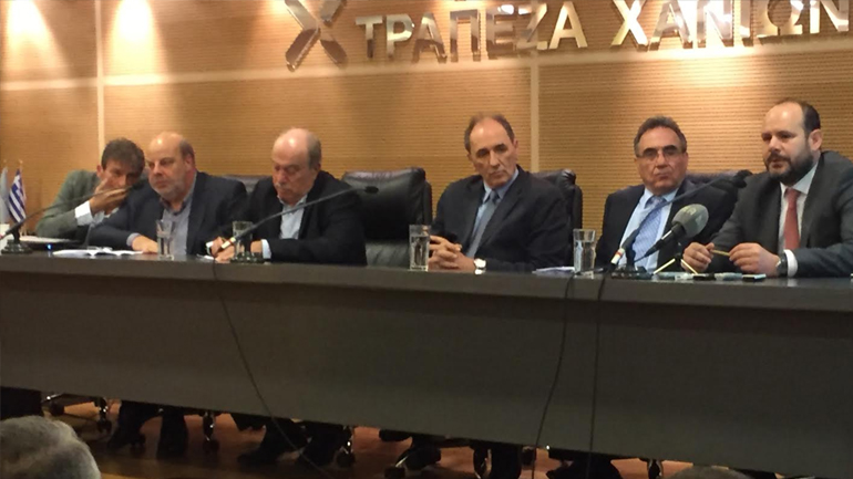 Ο Πρόεδρος του Φορέα Υλοποίησης και Πρόεδρος της Συνεταιριστικής Τράπεζας Χανίων κ. Μιχαήλ Μαρακάκης αναφέρθηκε εξονυχιστικά στις προσπάθειες της Τράπεζας για την ενίσχυση της τοπικής ανάπτυξης και τοπικής επιχειρηματικότητας, κόντρα στους καιρούς και τα μηνύματά τους. Ανέδειξε την επιμονή της Τράπεζας ως το κλειδί της επιτυχίας για την αδειοδότηση και την έναρξη της κατασκευής των έργων υποδομής του Πάρκου, παρά τα χρόνια που παρήλθαν από την έναρξη της προσπάθειας, τις δεκάδες αντιξοότητες και το αντιαναπτυξιακό κλίμα που συχνά συνάντησε ο Φορέας. Ζήτησε από τον Υπουργό κ. Γ. Σταθάκη τη δημιουργία ειδικών κινήτρων τόσο στον υπό διαβούλευση αναπτυξιακό νόμο όσο και στο ΕΣΠΑ 2014-2020 (ΕΠΑνΕΚ) που θα διευκολύνουν την εγκατάσταση και μετεγκατάσταση επιχειρήσεων στα Επιχειρηματικά Πάρκα κατ’ εξαίρεση και καθ’ υπέρβαση των περιορισμών του Χάρτη Περιφερειακών Ενισχύσεων. Απευθυνόμενος στους επικεφαλείς των τοπικών θεσμών κ.κ. Περιφερειάρχη, Δήμαρχο Χανίων κ.λπ. να κάνουν κάθε δυνατή προσπάθεια για την άμεση έναρξη της κατασκευής των εξωτερικών έργων υποδομής και ιδίως των οδών πρόσβασης στο Επιχειρηματικό Πάρκο τόσο με απευθείας οδική σύνδεση όσο και μέσω νέας οδού παράκαμψης του οικισμού της Μαλάξας.