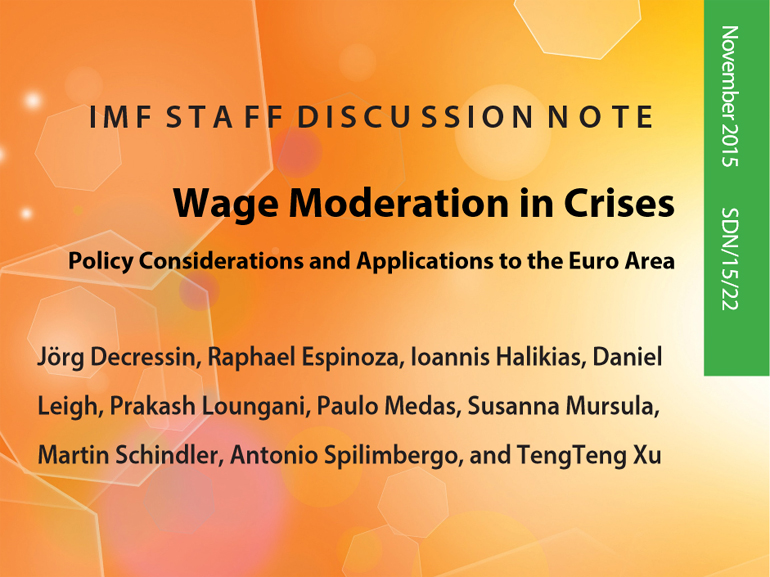 Ταυτόχρονα, οι εμπειρογνώμονες του ΔΝΤ εκτιμούν ότι «η ανάπτυξη των ονομαστικών μισθών μετριάστηκε πολύ, αλλά οι μισθοί δεν έπεσαν σχετικά με τα προ -κρίσης επίπεδα στις περισσότερες από τις χώρες που χτυπήθηκαν από την κρίση».
