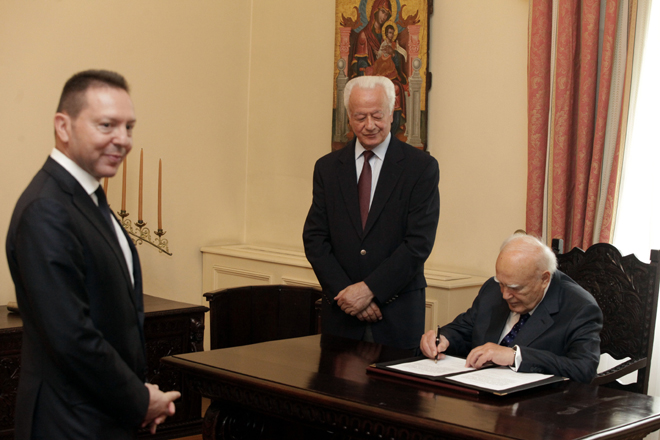 Ορκίστηκε σήμερα ενώπιον του Προέδρου της Δημοκρατίας Κάρολου Παπούλια και παρουσία του υπουργού Οικονομικών Γκίκα Χαρδούβελη, ο Γιάννης Στουρνάρας ως διοικητής της Τράπεζας της Ελλάδας.
