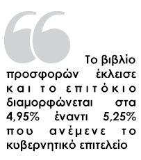 Πληροφορίες από ξένα ειδησεογραφικά οικονομικά μέσα σημειώνουν ότι το βιβλίο προσφορών έκλεισε και ότι το επιτόκιο διαμορφώνεται στα 4,75% έναντι 5,25% που ανέμενε το κυβερνητικό επιτελείο.